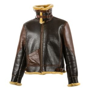 Embrace vintage aviation style with the B3 Aviator Leather Shearling Jacket for Men in Brown. Inspired by the original World War II bomber jackets, this piece features a rugged outer shell made from high-quality sheepskin leather and a soft faux fur lining that offers superior warmth during colder months. The brown leather finish paired with cream shearling creates a bold, masculine look perfect for winter adventures or city strolls. The belted collar and adjustable waist straps add both functionality and flair to this timeless classic.